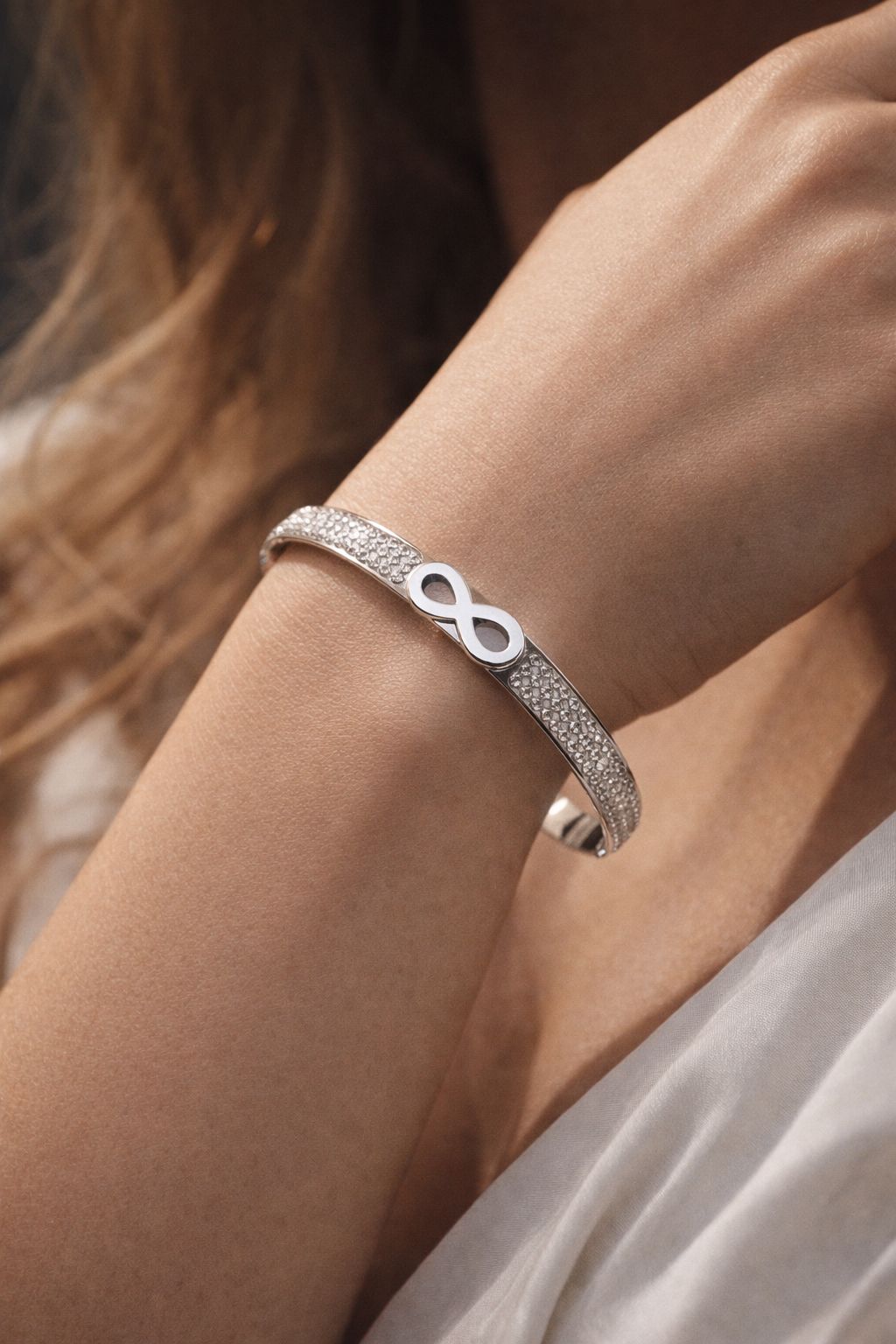 Its lightweight and comfortable design allows it to complement casual, formal, and evening outfits effortlessly, while the infinity motif adds a meaningful touch of connection and continuity.